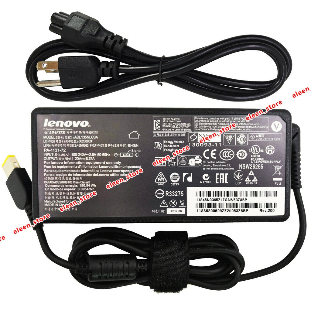 Free shipping for many products. Lenovo 20v 6 7a 135w slim tip ac adapter for lenovo y50c y50p y700 14isk adl135nlc3a 45n0367 pa 1131 72 45n0368 45n0502 4 3 out of 5 stars 28. A new replacement laptop ac adapter for lenovo adl135nlc3a laptop models this lenovo adapter 20v 6 75a 135w is interchangeable with any lenovo charger requiring 20v 6 75a 135w or less as long as the voltage matches. The charger can be used worldwide so take it with you when you travel to another country.