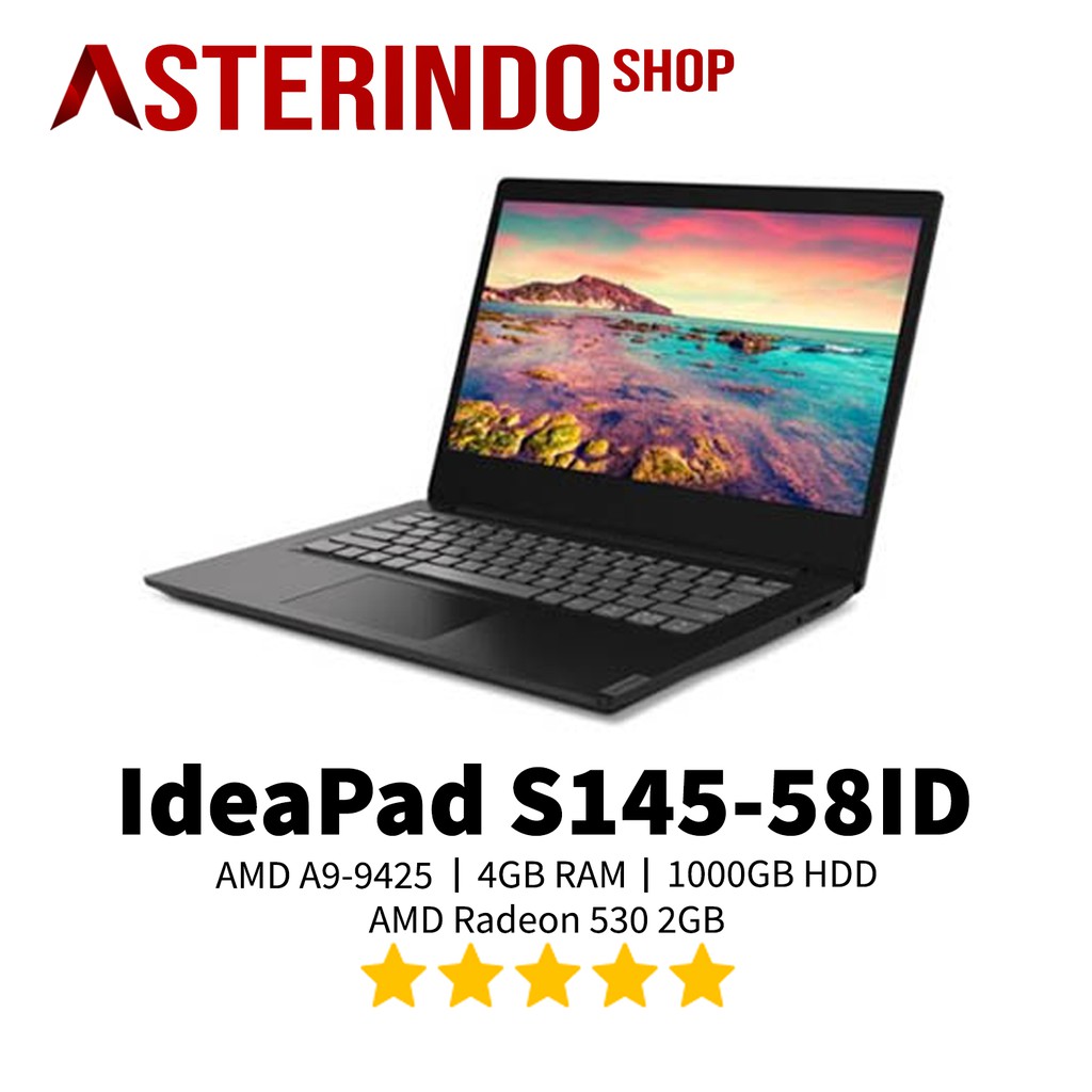 Laptop lenovo ideapad s145 amd a9 9425 ram 8gb dual vga amd radeon 2gb. Lenovo ideapad s145 harga 4 jutaan intel 4205u ssd 256gb. Lenovo ideapad s145 15ast 15 6 a9 9425 8 gb ram 1 tb hdd us overview and full product specs on cnet. A narrow bezel makes for a cleaner design and larger display area so it s sure to impress too.