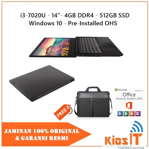 Lenovo ideapad s145 i3 7020u. Didesain untuk kinerja jangka panjang ideapad s145 menghadirkan pemrosesan yang kuat halus dalam desain yang stylish dan ringan. As well as speed and power this 15 6 inch laptop boasts enhanced dolby audio and a narrow bezel display perfect for on the go entertainment. 7th generation intel core i3 7020u 2 3ghz 4gb ddr4 ram 12gb max 1tb hdd 15 6 wxga hd led backlit display intel hd graphics 620 full size keyboard with numpad microsoft windows 10 home 64 bit 1 year carry in warranty. Laptop lenovo ideapad s145 14 512ssd intel resmi baru.