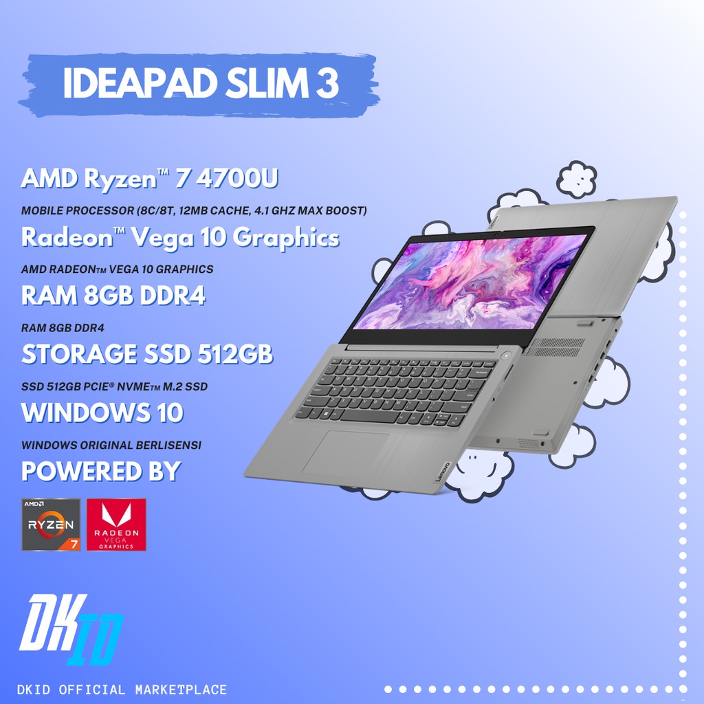 Pembayaran mudah pengiriman cepat bisa cicil 0. The american version of the slim 7 starts at 899 and has a 2 0 ghz amd ryzen 7 4700u processor with 8gb of ram a 512gb pcie ssd and integrated amd radeon graphics. It s also primed with a full hd fhd display so you can be entertained at home or on the go. Lenovo yoga slim 7 amd ryzen 7 4800u processor 16gb lpddr4x 1tb ssd m 2 2280 nvme tlc windows 10 home integrated graphics 14 full hd 1920 x 1080 ips 300 nits baterai hingga 14 jam fhd kamera infra red ir wifi 5 802 11 ac 2x2 bluetooth pembaca sidik jari opsional 2 x 2w dolby atmos yang menghadap ke depan dimensi 320 6 x 208 x 14 9mm berat mulai dari 1 4kg port.