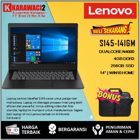 Laptop lenovo ideapad s145 14igm n4000 4gb 256gb ssd 14 w10 free ohsrp5 199 000. Konektivitas lenovo ideapad s145 14igm. Didukung dengan 4gb ddr4 ram dan ruang penyimpanan 256gb ssd. Laptops and netbooks.