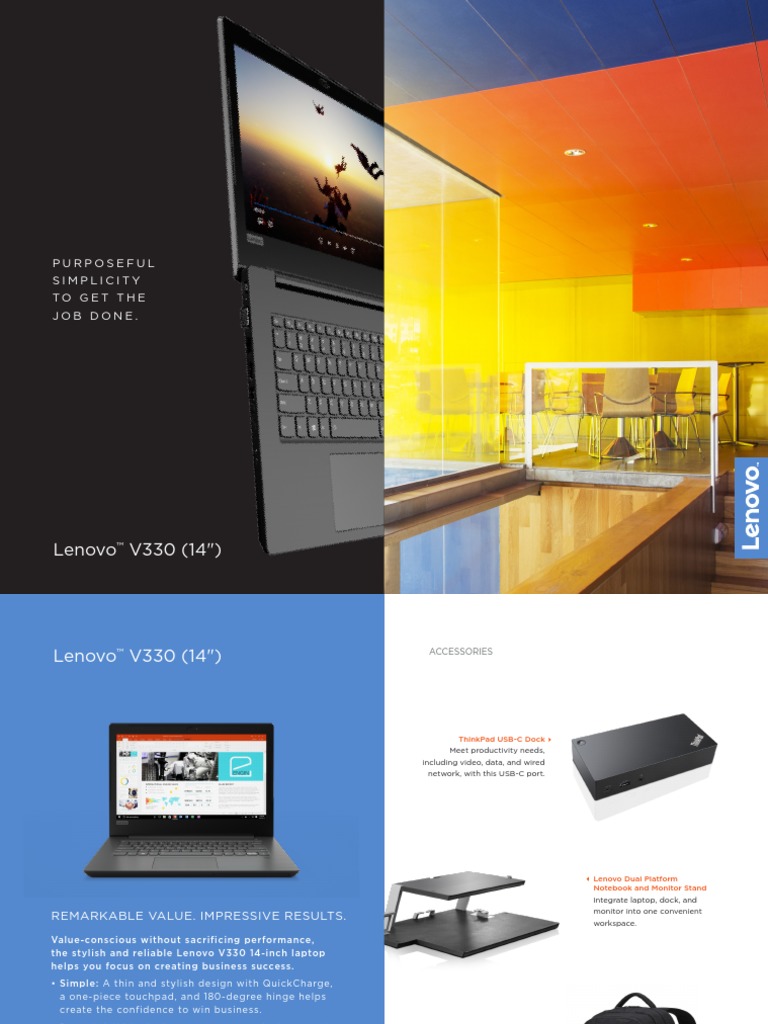 Purchase a product key to activate. Lenovo v330 14 inch business laptop optimized for security flexibility and reliability and its powerful intel technology increases the productivity. Value conscious without sacrificing performance the stylish and reliable v330 14 laptop helps you focus on running a successful business. Powerful intel technology keeps you working productively.