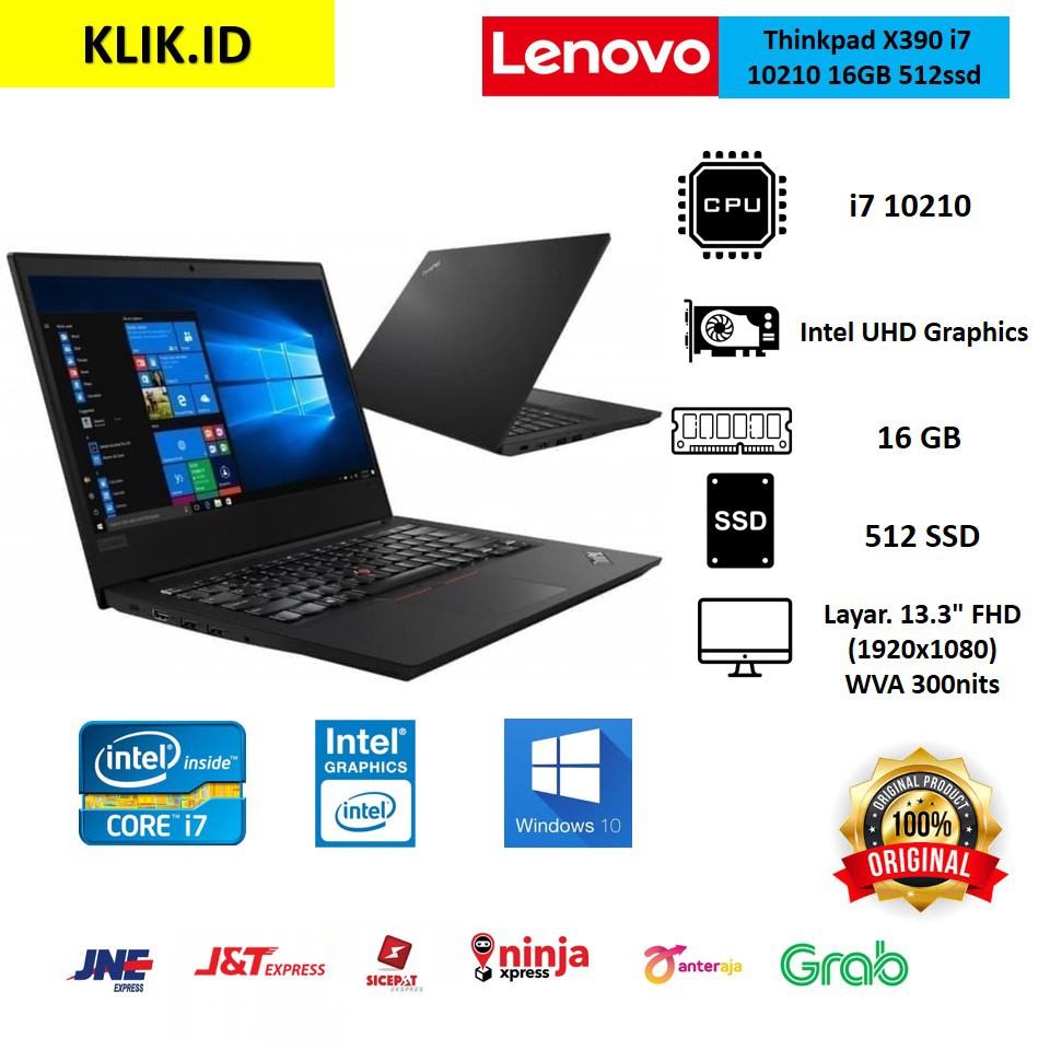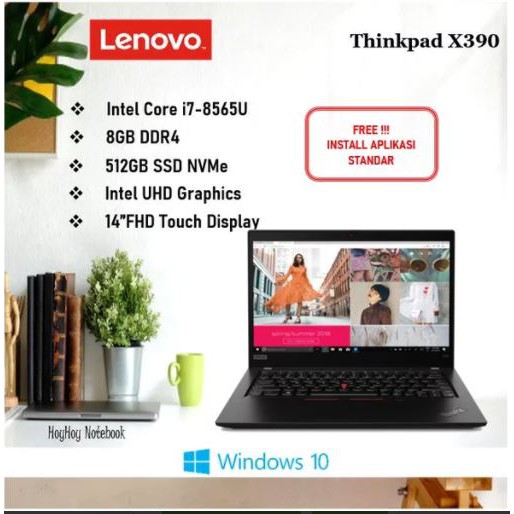 The thinkpad x390 is built around intel s whiskey lake 14nm processors specifically the 15 watt u series core i5 and core i7 chips. Lenovo thinkpad x390 touch i7 8565 16gb 512ssd w10 13 3fhd hitamrp14 999 000. The graphics unit is always an intel. The x390 is a perfect traveling companion slim light with great battery life.